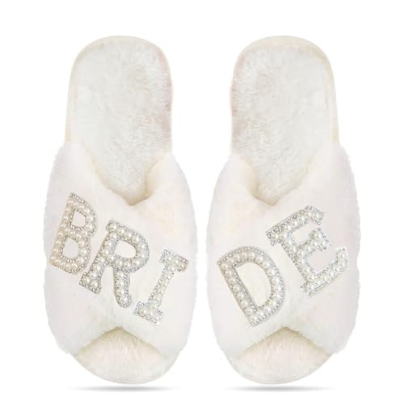 - Design: Open toe with ‘bride’ pearl lettering embellishment