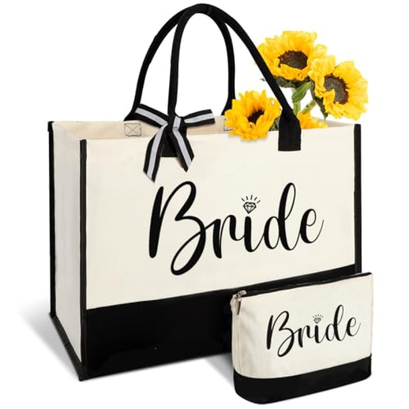 Bride Gifts Canvas Tote and Makeup Bag Set