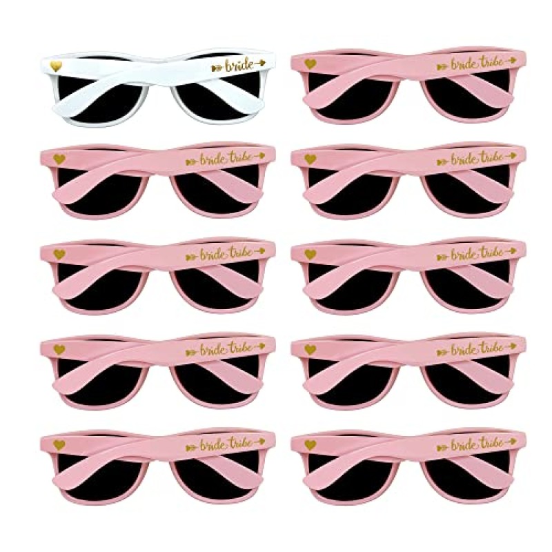 - Includes 1 white 'Bride' and 9 pink 'Brides tribe' sunglasses
