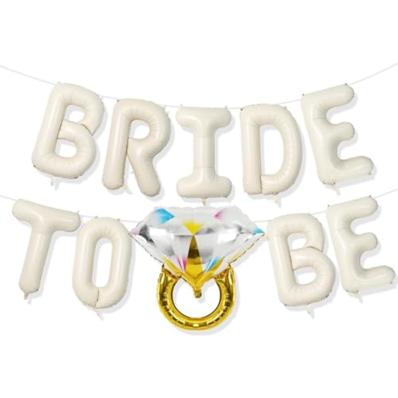 - Includes 9 beige 16-inch 'BRIDE TO BE' foil balloons and 1 24-inch diamond ring mylar balloon