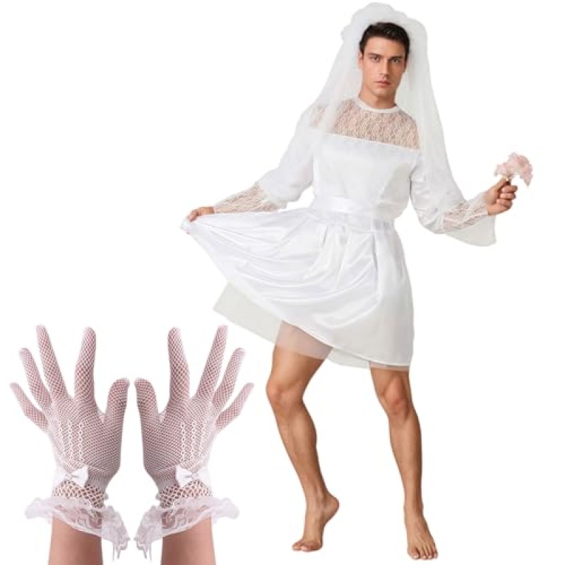 Deluxe Men's Lace Wedding Dress Costume for Hen Do Fun