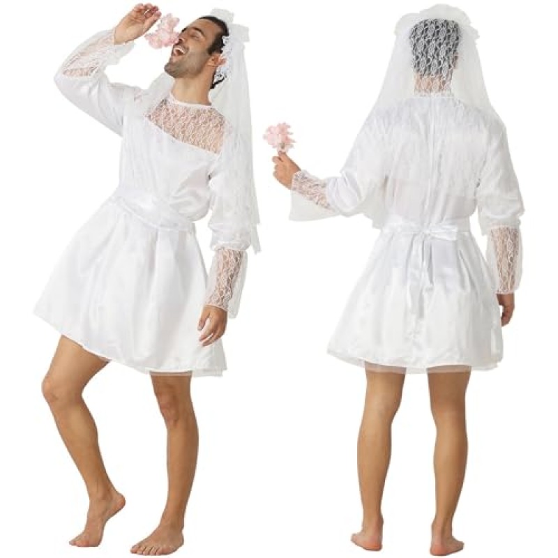 Deluxe Men's Lace Wedding Dress Costume for Hen Do Fun