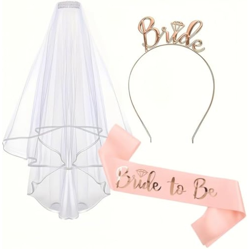 Elegant Bridal Ribbons and Veil Set for Hen Parties