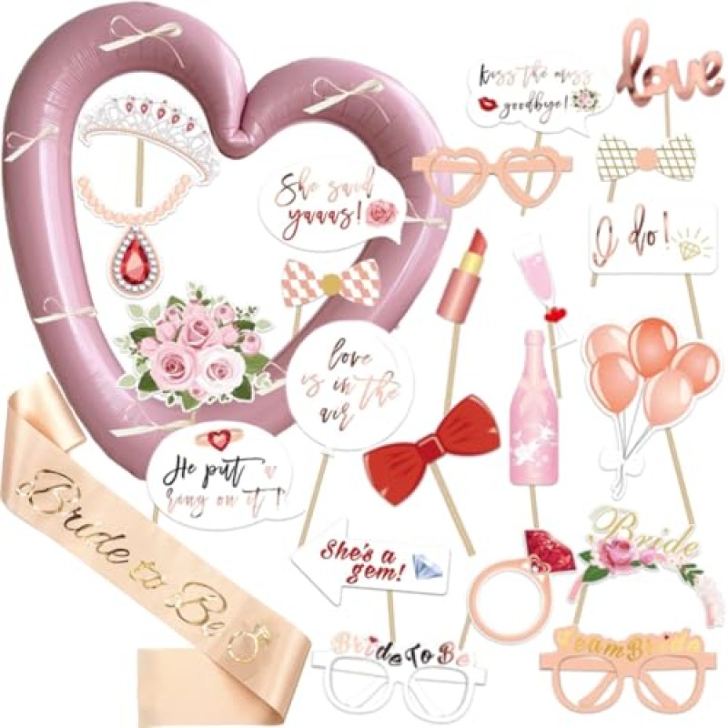 Capture joyful moments with this charming hen party photo booth set, featuring a unique heart-shaped inflatable frame in a chic rose gold shade. Perfect for adding a warm and stylish touch to hen dos across Yorkshire, this set encourages laughter and creativity as the bride-to-be and her friends strike playful poses together. The collection includes 23 bright, reusable props like sparkling rings, floral garlands, and quirky glasses, all designed with safe, eco-friendly materials that hold up well throughout the celebrations. Whether you're gathering in a cosy cottage or enjoying a weekend away, the easy-to-hold wooden sticks and the beautifully printed "Bride to be" satin sash help make every photo an unforgettable keepsake. Thoughtfully crafted for group fun, this set complements the relaxed yet festive spirit of a Yorkshire hen weekend, letting you share special moments in style and with plenty of smiles.