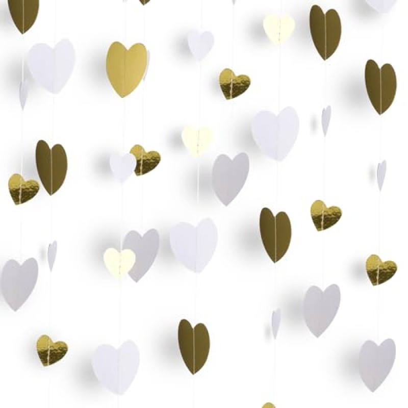 - Feature elegant white and gold love heart design for a sophisticated look