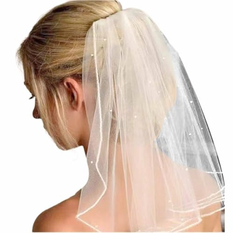 Pearl-Embellished Bridal Veil with Comb