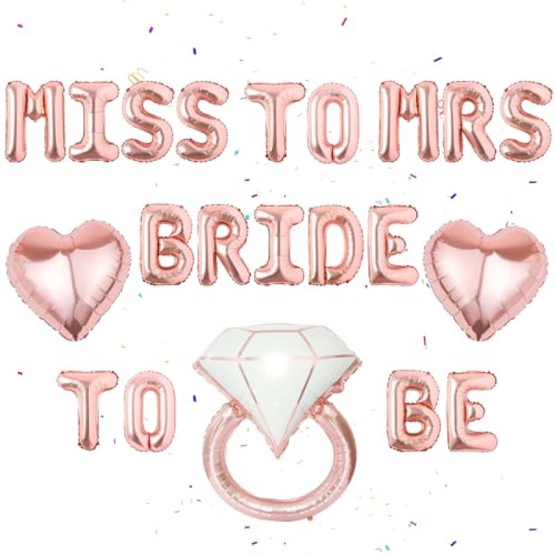 - Includes 18 rose gold letter foil balloons, 2 heart-shaped balloons, and 1 diamond ring balloon