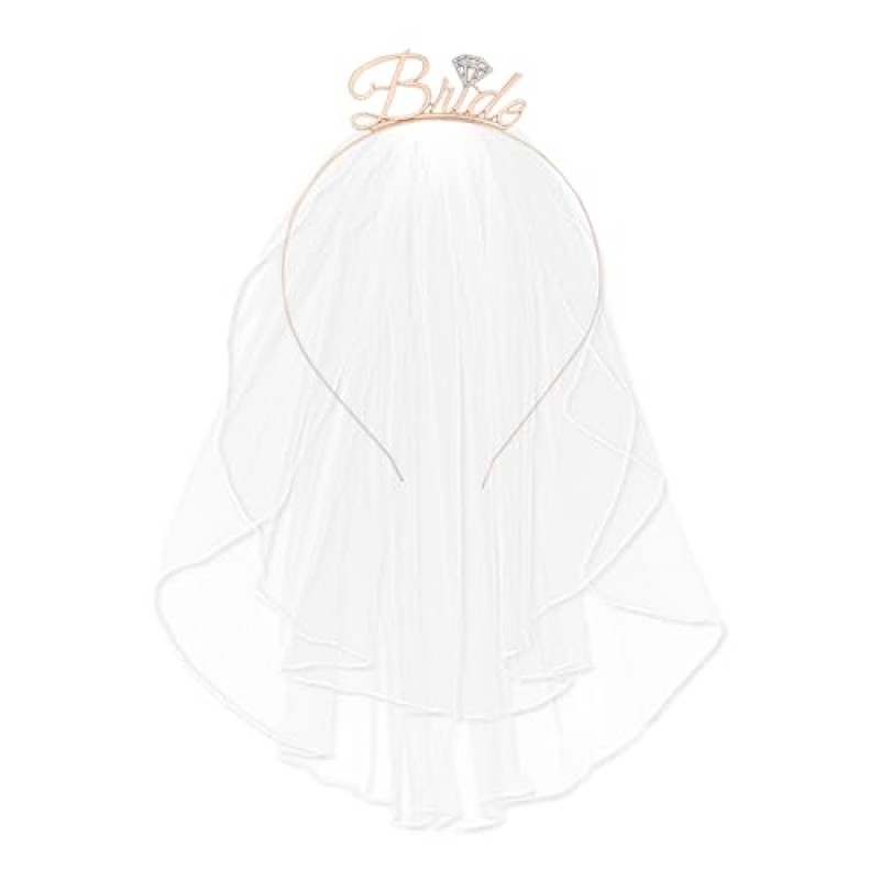 This elegant rose gold bridal headband paired with a delicate white veil adds a touch of sparkle and style to the bride-to-be's ensemble. Crafted from sturdy alloy metal, this shining tiara holds the tightly wrapped veil securely, making it perfect for a hen party or wedding weekend celebration. Imagine the bride glowing in this piece as she enjoys cosy moments with her closest friends and family, perhaps even capturing playful photos against a charming Yorkshire backdrop. It’s a subtle yet beautiful accessory that helps make the hen do feel that little bit more special and memorable for everyone involved.