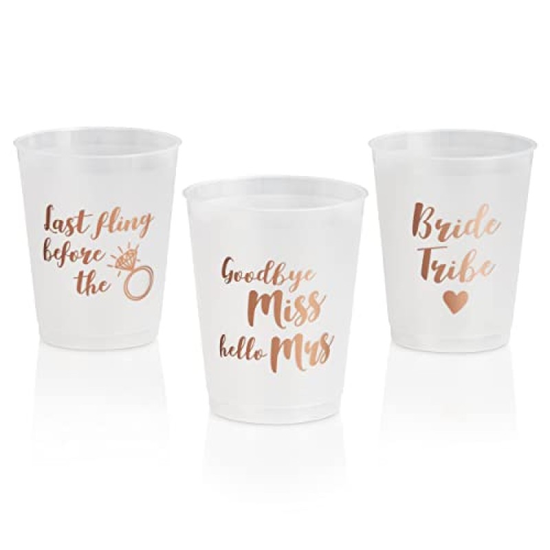- Pack of 12 cups with 3 rose gold designs, 4 of each message included