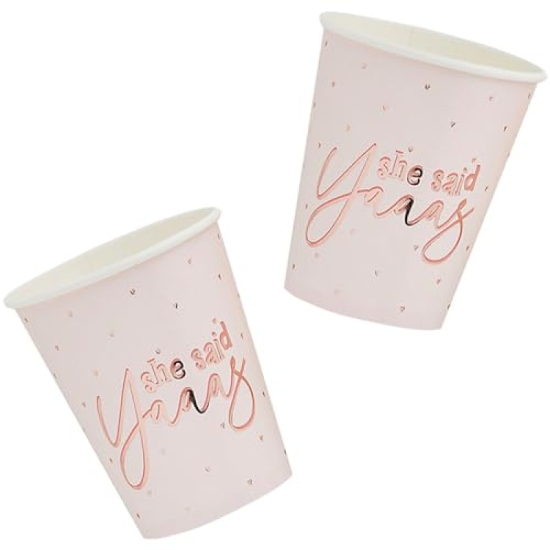 These elegant rose gold paper cups make a charming addition to any hen do, adding a touch of sparkle to your celebrations. Perfect for serving drinks or toasting the bride-to-be, the 'She Said Yaaas' text brings a joyful vibe to your gathering. With a set of 10 cups, they’re ideal for small groups enjoying a cosy Yorkshire weekend together, whether at a charming rural cottage or a favourite local venue. Their paper material means easy disposal and less fuss, so your group can focus on shared laughter, photos, and making memories.